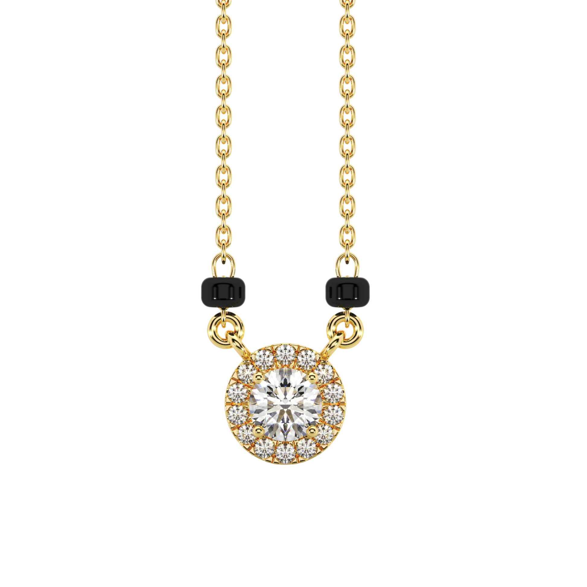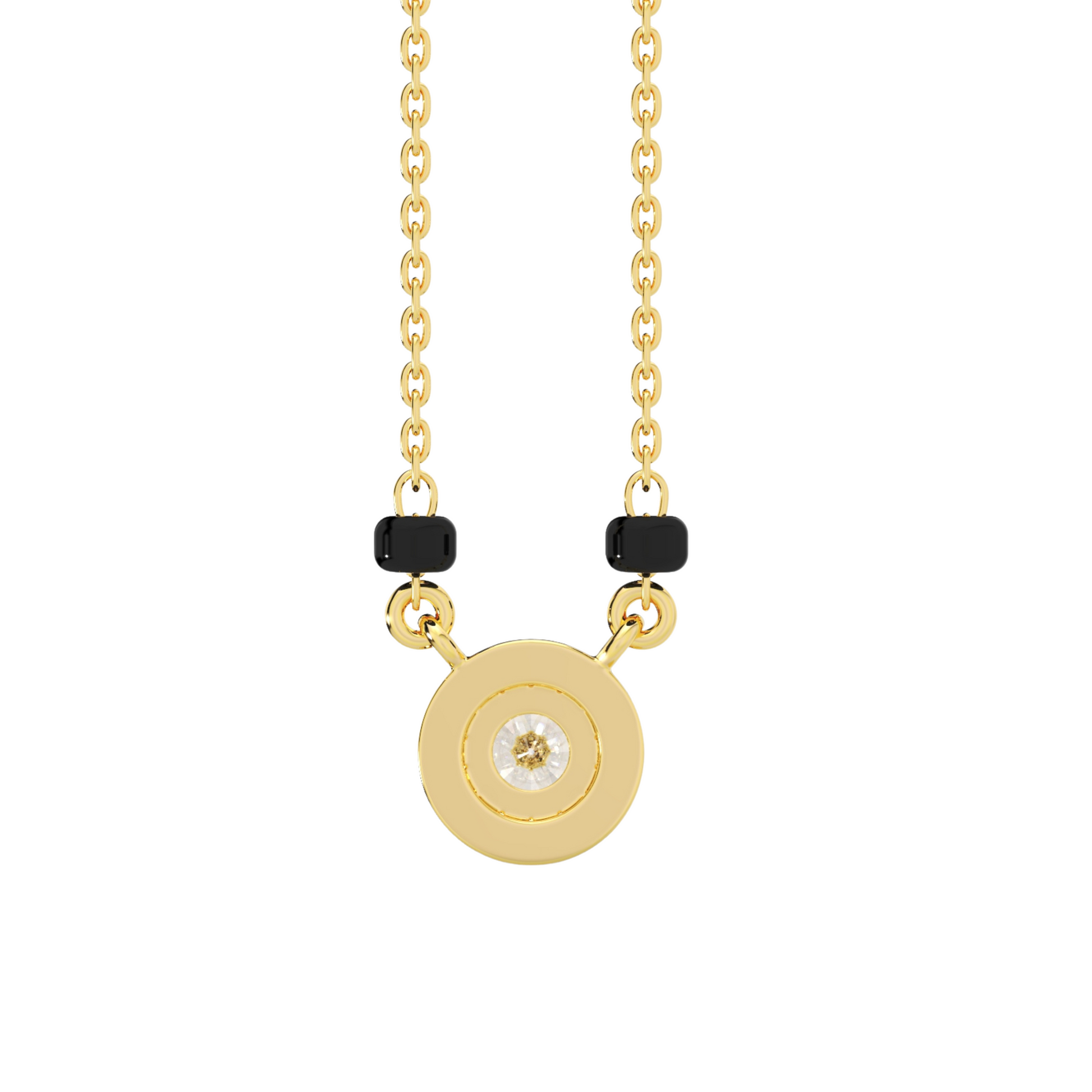 Experience an unbreakable bond with the Diamond Mangal Sutra, a symbol of the unbreakable connection between husband and wife. A must-have for married women, believed to bring prosperity to your husband and family. Black beads in a black Mangal sutra design hold a deep symbolic meaning, representing strength, protection, and the unwavering commitment of a wife.